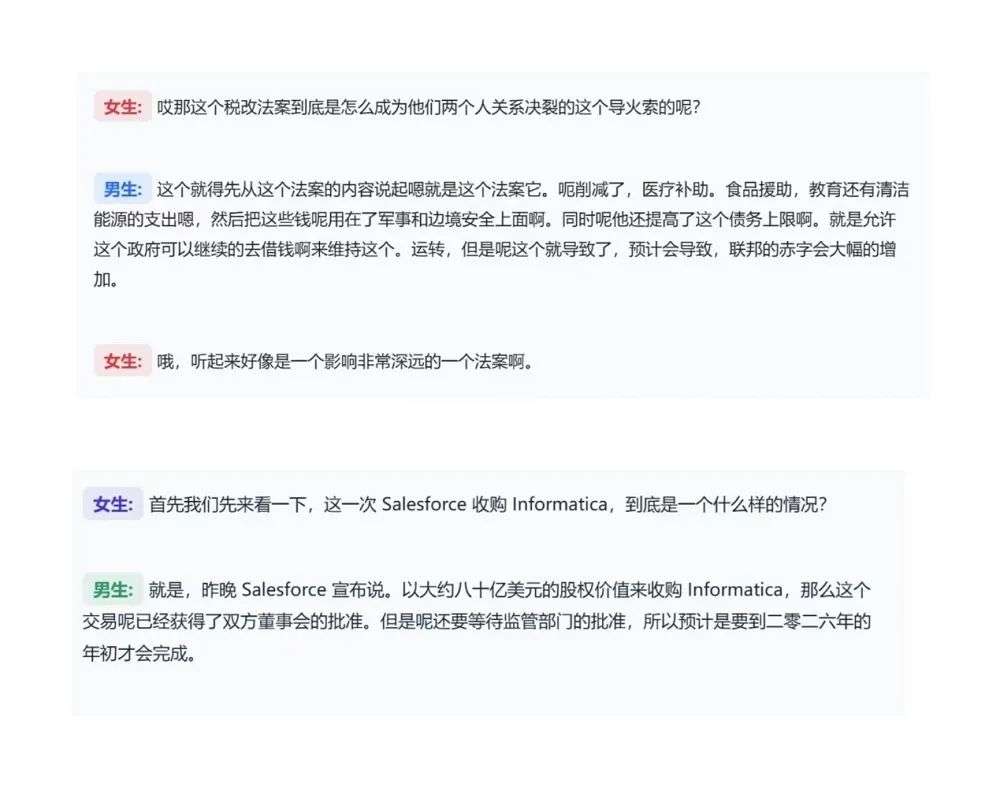但模型并未受到原文本的影响,会以问答的形式推进播客。每个问答的长度适中,凝练的问题为听众提供了更为清晰的收听体验,不会在长篇大论中失去方向。