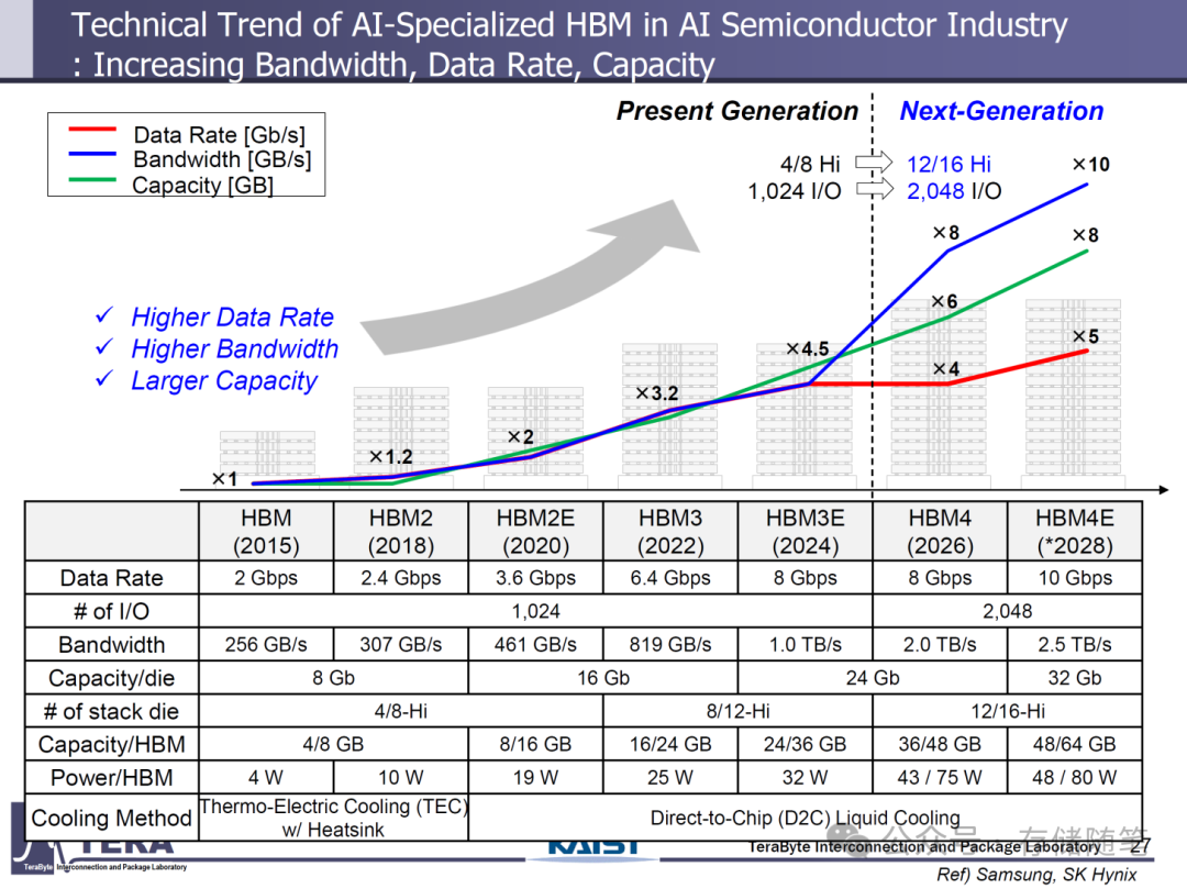 HBM5的封装技术仍采用Microbump(MR - MUF),但在散热方面,将引入沉浸式冷却、热通孔(TTV)和热键合等技术,以应对更高的功耗。