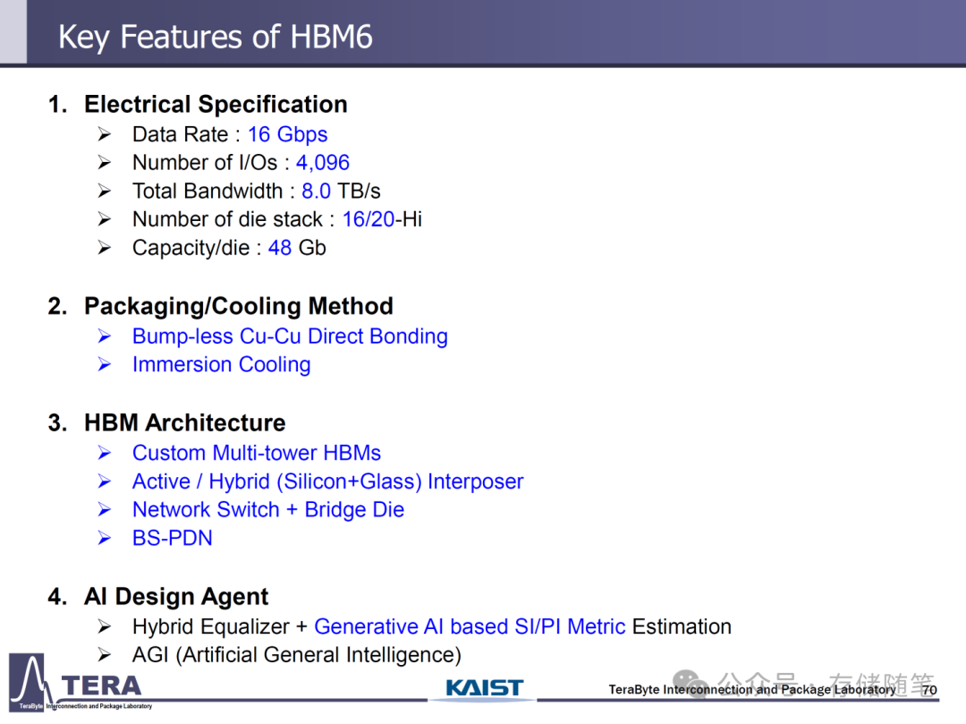 HBM6在封装和散热方面也有重大创新。它将采用无凸点铜 - 铜直接键合技术,以提高封装的可靠性和性能。散热方面,将采用沉浸式冷却方案,并引入定制的多塔式HBM结构和有源/混合(硅 + 玻璃)中介层。此外,HBM6还将集成网络交换机和桥接裸片,进一步提升系统的整体性能。
