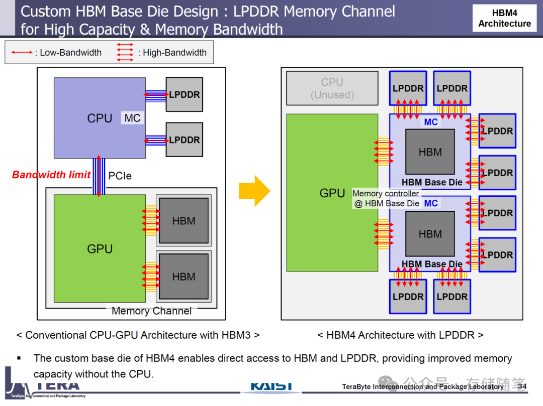 此外,HBM5还将采用专用的去耦电容芯片裸片堆栈,以及定制的带有3D NMC - HBM和堆叠缓存的基础裸片,并在基础裸片中集成LPDDR和CXL技术。