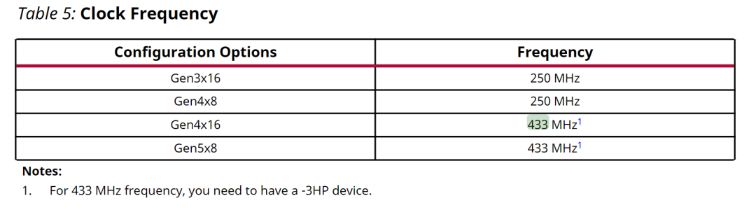 根据ds959手册以及PG347手册,ST模式下由于只会有一组ST_CPM2PL接口,而且位宽是512bit,所以理论上要到达PCIe5x8的带宽,是需要时钟跑到500M,但由于器件限制,其时钟最高是433M,实际综合下来时序收敛挑战很大。
