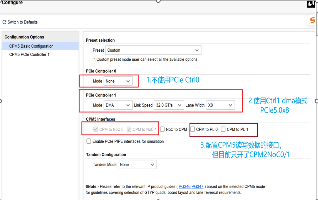 注意:CPM控制器0的数据路径不如控制器1多,少了MM_CPM2PL,为此这里选择控制器1。
