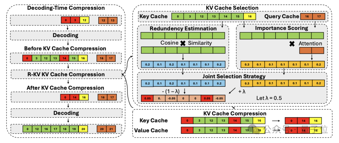 R-KV三步走:冗余识别+重要性评估+动态淘汰