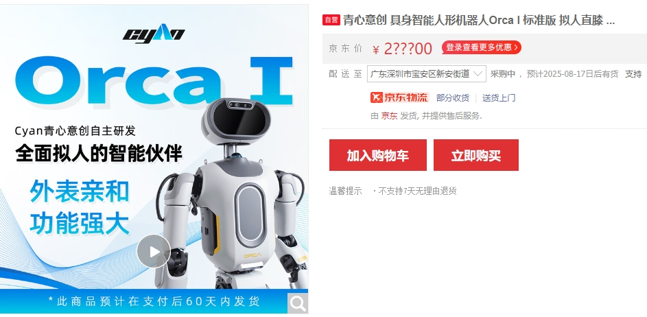青心意创的Orca I正式开售,标准版29.8万元、旗舰版34.8万元,据悉,作为一款面向实用场景的具身机器人,其此前已完成多轮商用交付。