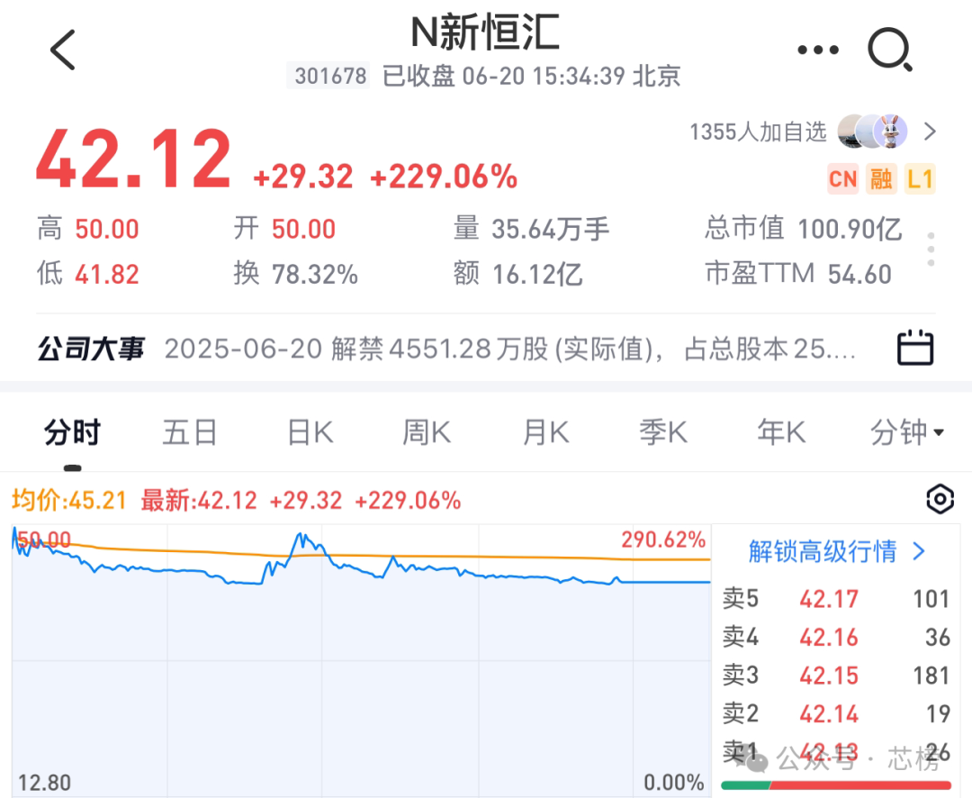 6 月 20 日,新恒汇电子股份有限公司(证券代码:301678)在深交所创业板成功上市,开盘价 50 元,相较发行价 12.8 元暴涨 290.63% ,截至当日收盘,市值飙升至 105 亿元。作为芯片首富虞仁荣精心布局的第二家芯片企业,新恒汇此次发行 5989 万股,募集资金高达 7.67 亿元,主要用于高密度 QFN/DFN 封装材料产业化项目以及研发中心的扩建升级。