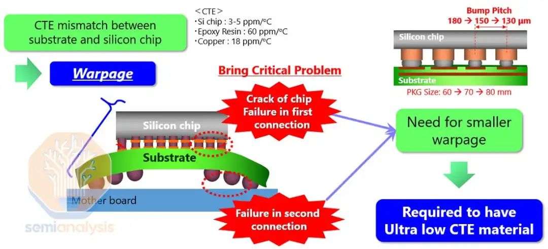 其中一个问题与在中介层以及有机中介层内嵌入多个精细凸点间距的硅桥有关,这可能会导致硅芯片、硅桥、有机中介层和基板之间的热膨胀系数(CTE)不匹配,从而引发翘曲。