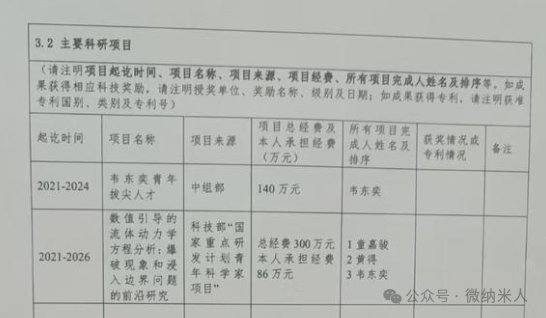 有网友确认,韦东奕系中组部青年拔尖人才,获批科技部“国家重点研发计划青年科学家项目”。