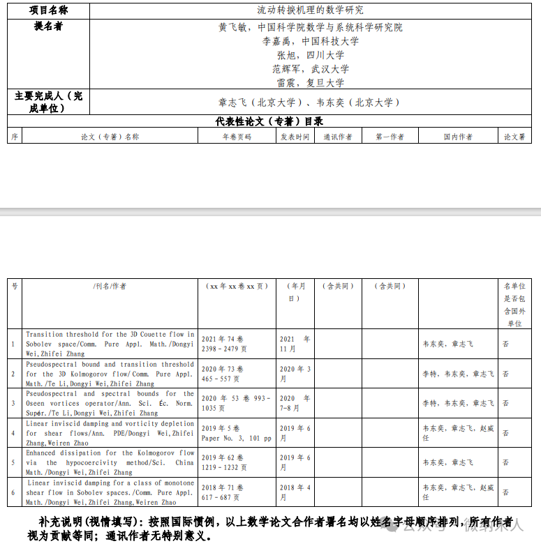 根据上述公示,北京大学章志飞、韦东奕为主要完成人的项目《流动转捩机理的数学研究》被提名2025年度国家自然科学奖。