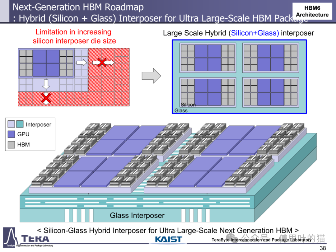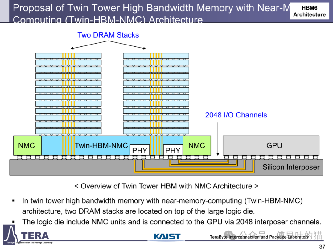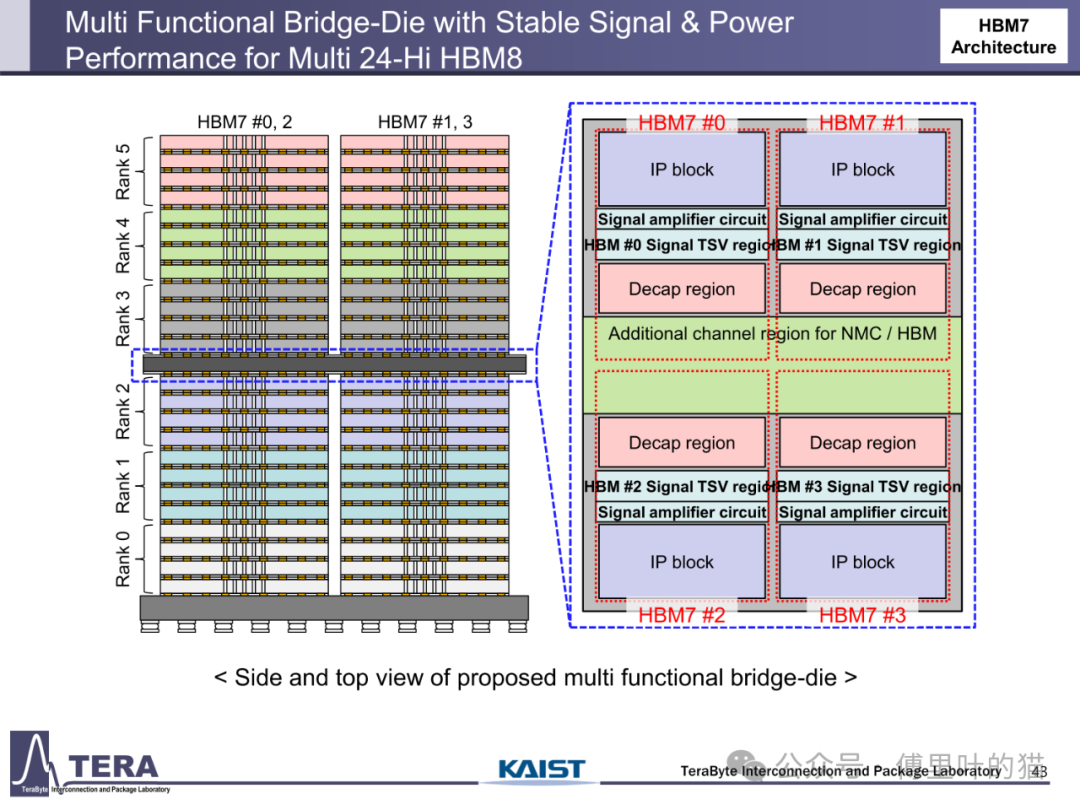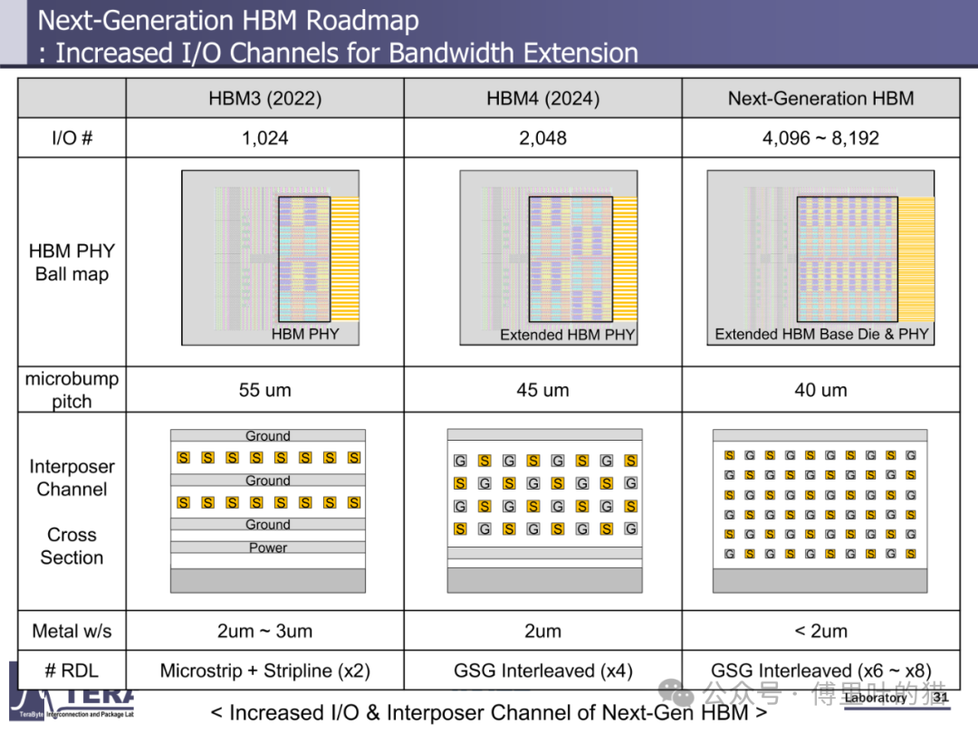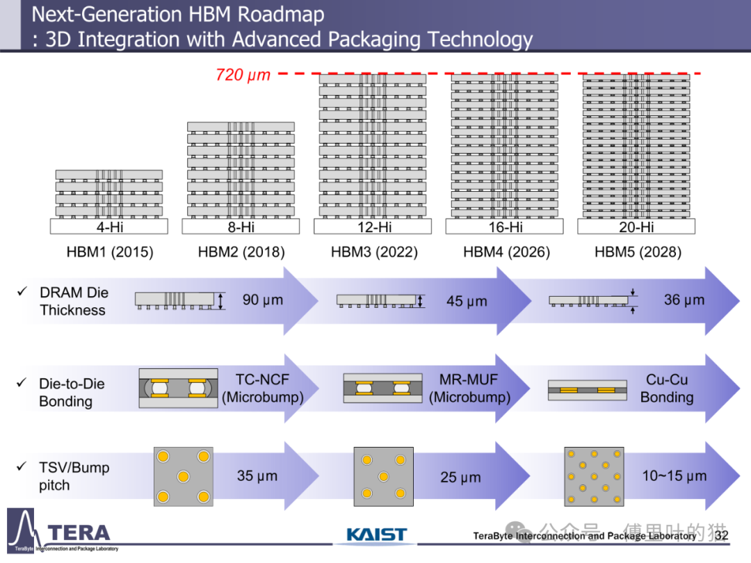 今天我们来看下KAIST TERALAB在前两天的一次workshop中公布的一些关于HBM的技术。KAIST 实验室在高带宽内存(HBM)设计技术方面处于世界领先地位,由被部分业内人士称为 “HBM 之父” 的 Kim Joungho 教授领导,在 HBM 领域有诸多开创性的研究成果。2017 年 Kim Joungho 教授首次正式公布了 Kim 法则,该法则对半导体行业的长期规划和研发目标设定起到了重要的指导作用。在前几天,该实验室举办了关于下一代 HBM 路线图的技术展示会,介绍了从 HBM4 到 HBM8 的长期路线图,涵盖 HBM 架构、冷却方法、TSV 密度、中介层等方面的进展。