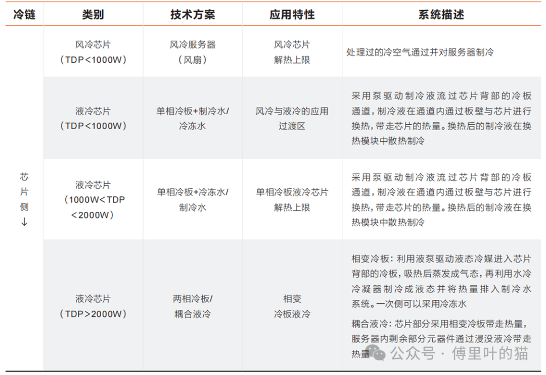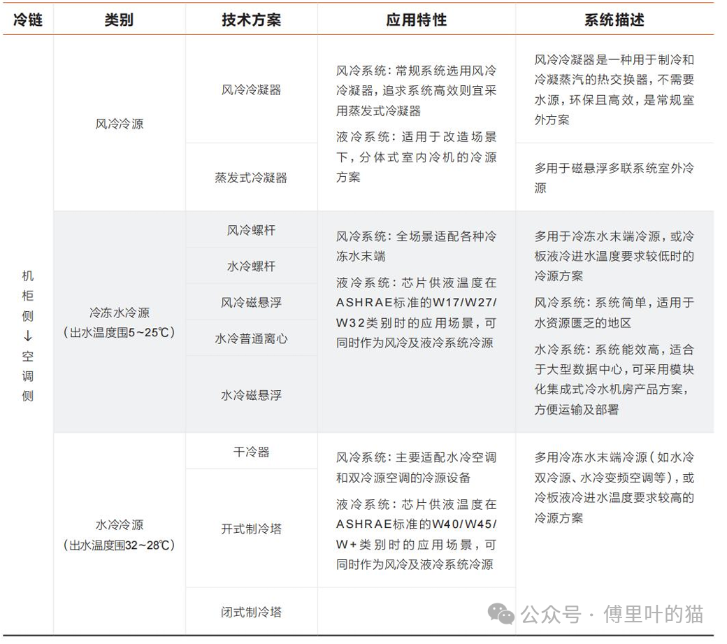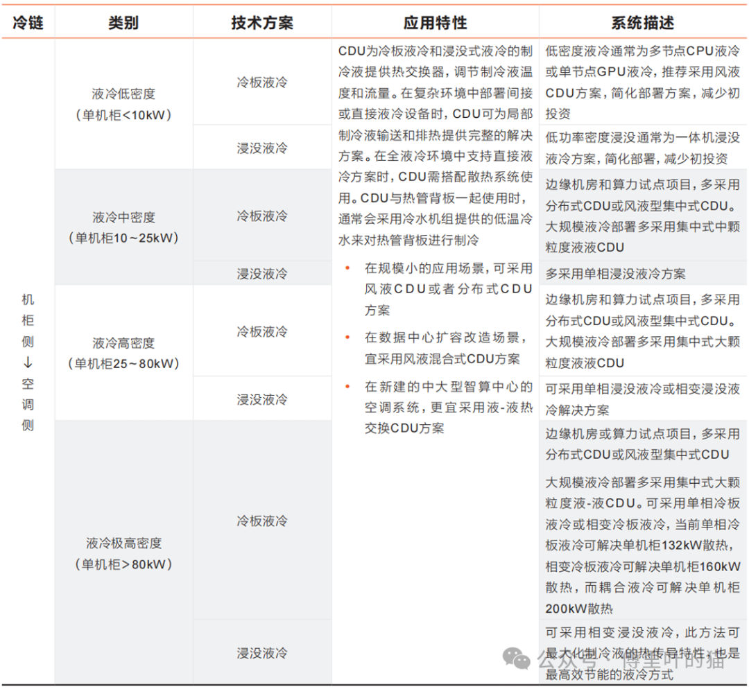 液冷技术类型及原理:包括冷板式、浸没式、喷淋式液冷。冷板式采用微通道强化换热,成熟度高;浸没式和喷淋式实现 100% 液体冷却,节能效果优。从系统架构看,分室外侧(冷却塔等)和室内侧(CDU 等)。冷板式是芯片热量间接传液体,低发热元件风冷;浸没式服务器浸冷却液,分单向(冷却液仅温度变化)和两相(冷却液有相态转变);喷淋式面向芯片级精准喷淋。芯片侧,风冷、单相冷板、相变液冷解热上限不同。机柜侧,高密机柜用液冷是趋势,风液混合成高密设计标准,不同场景适用不同 CDU。冷源侧,芯片供液温度决定液冷 CDU 冷源模式。