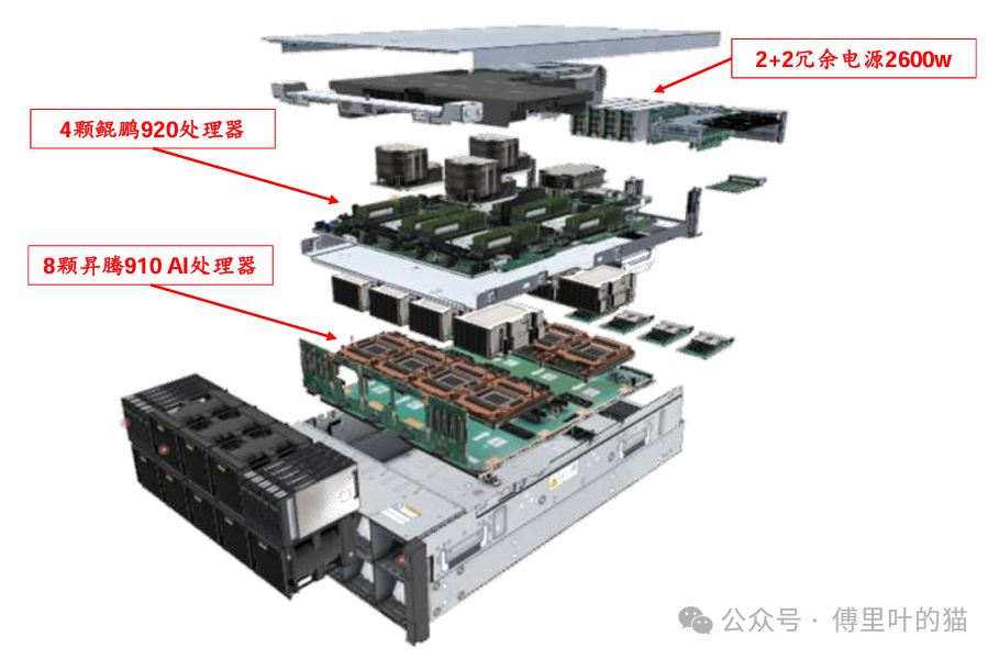 Atlas 800T A2 用于 AI 训练场景,适配大规模数据中心集群部署。其基于华为自研鲲鹏 920 处理器与昇腾 910 AI 处理器,配备 4 颗鲲鹏 920 处理器和 8 颗昇腾 910 AI 处理器 ,支持 4 个 2600w 热插拔电源模块,采用 2 + 2 冗余备份。该训练服务器广泛应用于深度学习模型开发与 AI 训练服务,面向公有云、互联网等多领域,具备高计算密度、高能效比等优势,满足企业机房及大规模数据中心部署需求。华为昇腾 910B 对标 A100,预计随华为下一代芯片升级,未来有望对标英伟达 H100,若为 8 卡形式或有升级,电源模块价值将提升。