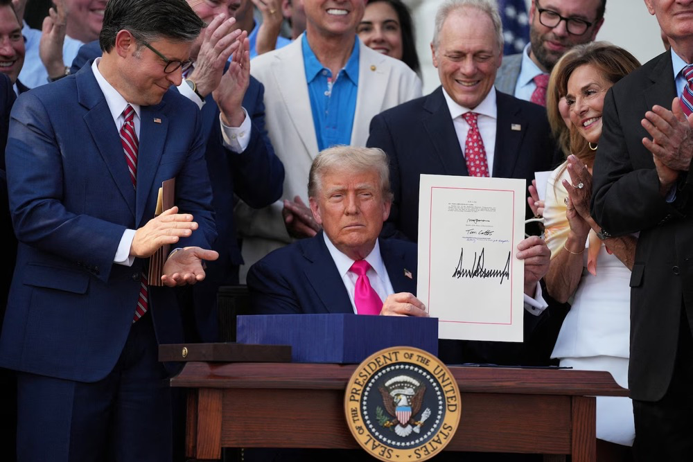 当地时间7月4日,美国总统特朗普签署“大而美”法案(图片来源:美联社)