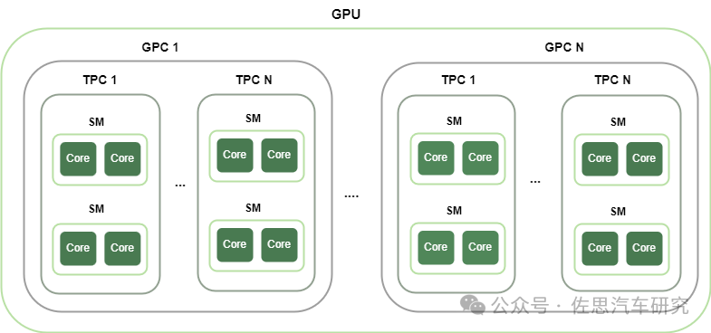 首先我们要对GPU架构有所了解,与CPU相比,GPU的体系架构中的一个最大特点就是增加了大量的运算单元ALU,通常GPU的一个处理器(也叫做流式多处理器,Streaming Multiprocessor)包括数十甚至上百个简单的计算核,整个GPU可以达到上千个核,与CPU相比,每个核的结构简单了很多,通常不支持一些CPU中使用的较为复杂的调度机制。在执行指令的时候,为了充分利用每一次读取指令带来的开销,GPU会以一组线程为单位同时执行相同的指令,即SIMT(单指令多线程)的方式,在CUDA GPU上,一组线程称为warp,也翻译叫线程束,一个warp有32个线程,每个线程执行相同的指令但访问不同的数据。为了将一个并行程序映射到GPU的多级并行度上,CUDA中首先将一组线程(通常不超1024个)组成一个线程块(block),每个线程块中的线程又可以分成多个warp被调度到GPU核上执行,一个线程块可以在一个SM上运行,多个线程块又可以组成一个网格(grid)。