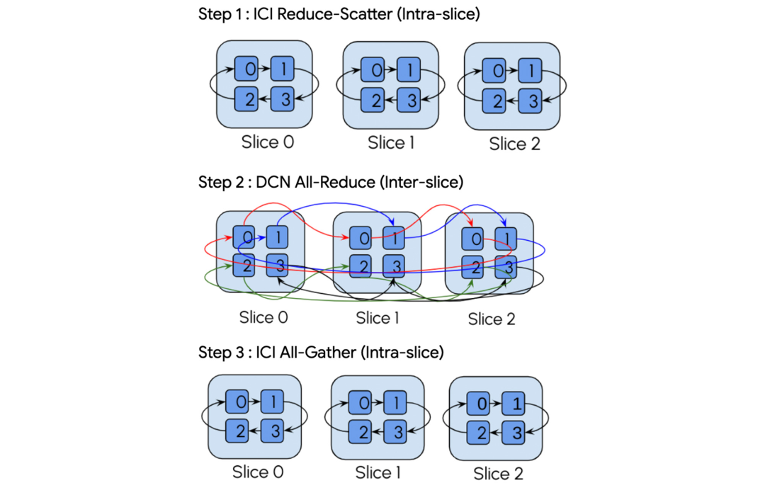 例如,这里是Google博客中跨多个slice的all-reduce操作的分解。