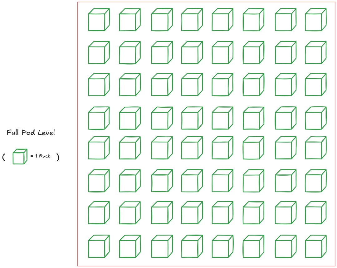 也称为"Superpod"或"Full pod"。例如,TPUv4的TPU Pod将包含4096个芯片或64个TPU Rack
