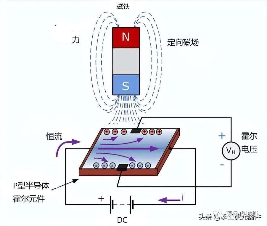 由于电荷载流子磁场的畸变,带负电的电子将偏转到板的一侧,而带正电的空穴将偏转到板的另一侧。在板的两侧之间会产生一个电位差,称为霍尔电压,可以用仪表测量。