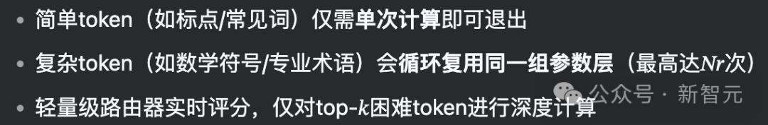 LLM在处理文本时,会把句子拆成一个个token,不过,像「的」「是」「在」这种词,并不需要多高深的推理,只需要一次前向传播就够了。而复杂的token,则需多次经过同一层栈。