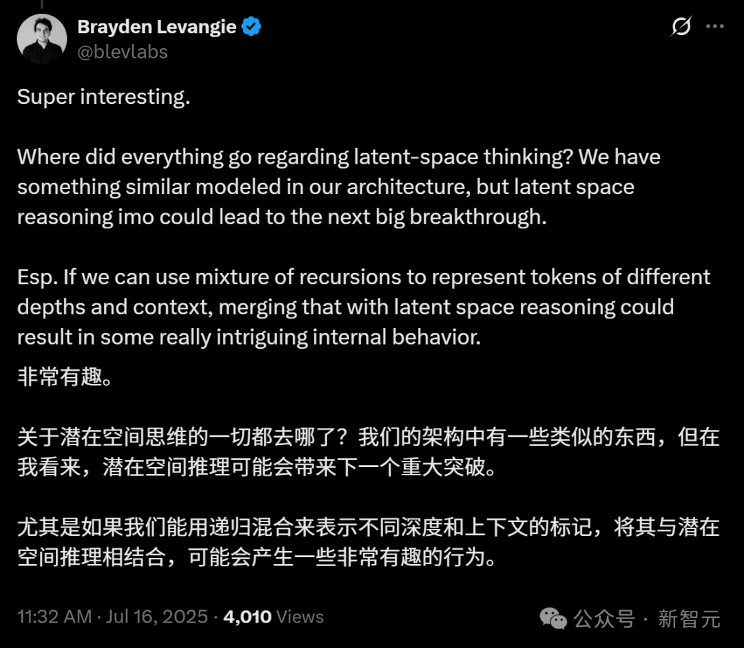 一个名为Mixture-of-Recursions的全新LLM模型架构。