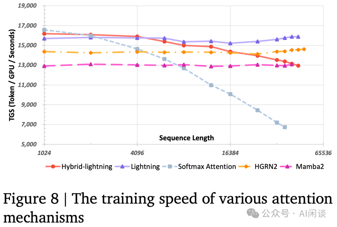 如下图 Figure 8 所示,作者也对比了不同机制的训练吞吐。可以看出,随着序列长度增加: