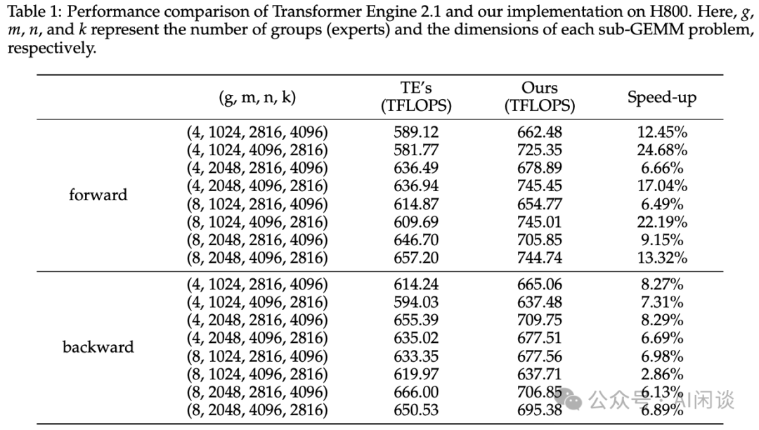 FP8 算子融合优化:通过算子融合降低数据移动开销并提升计算强度,具体包括:(1) Forward 中 Permutation 操作与 FP8 量化的融合;(2) Forward 与 Backward 中 SwiGLU、Gate 概率乘法及 FP8 量化的三重融合。