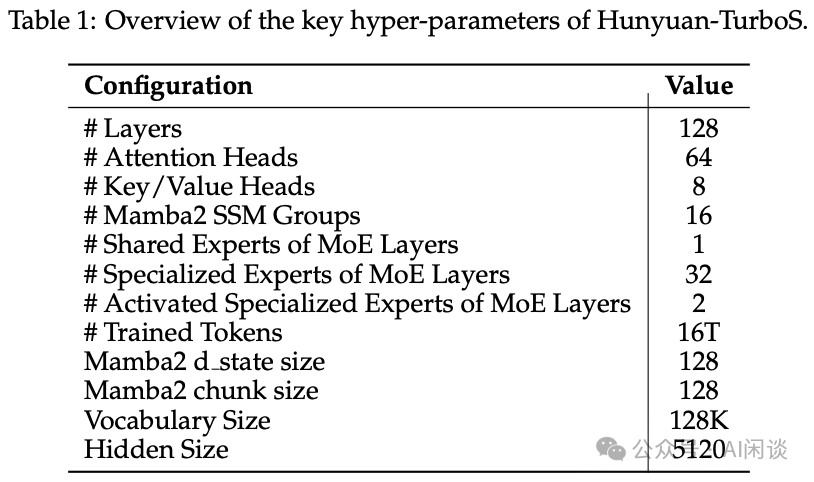 Qwen3 虽然提供了技术报告,但并没有提供使用的 GPU 资源量、MFU 以及相关的训练优化手段。 5.4 腾讯 Hunyuan-TurboS 我们前面提到过,腾讯的 Hunyuan-TurboS W560A56 模型([2505.15431] Hunyuan-TurboS: Advancing Large Language Models through Mamba-Transformer Synergy and Adaptive Chain-of-Thought)采用了 Softmax Attention 与 Mamba2 混合的架构: