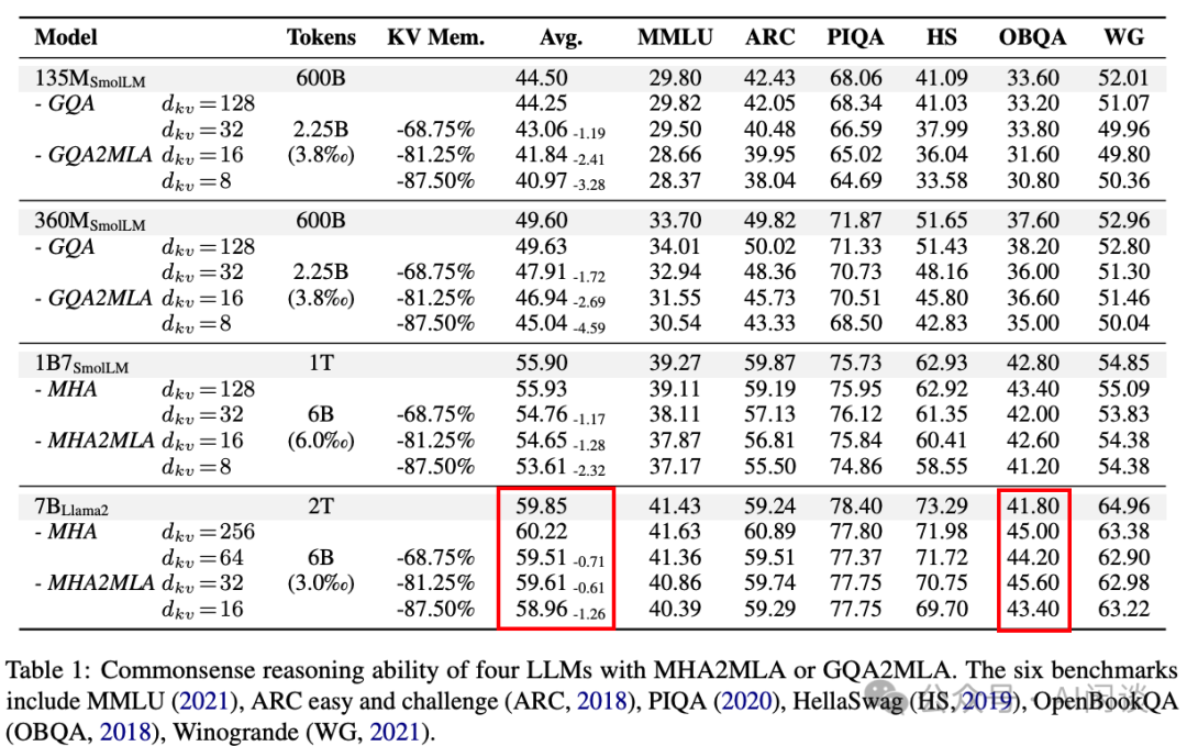 和 MHA2MLA 有同样问题,评测任务中考 OBQA 拉高得分,另外模型是 LLaMA2MLA。