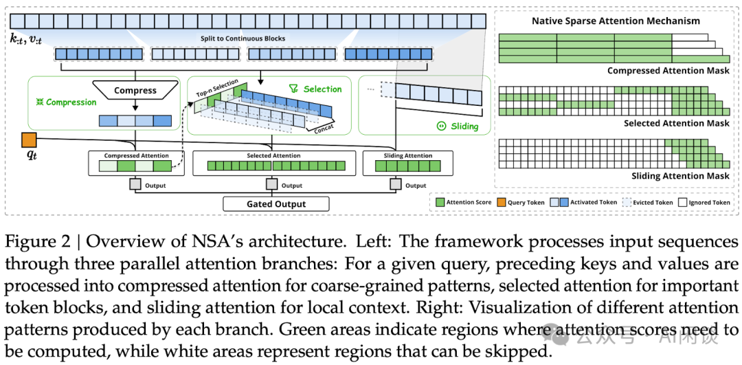 如下图 Figure 2 所示是 DeepSeek NSA 的主要原理: