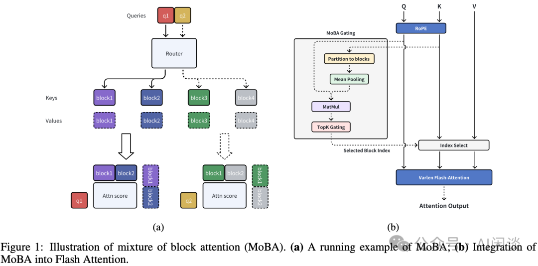 如下图 Figure 1 所示为 Moonshot AI MoBA 的主要原理: