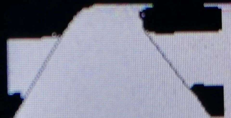 这是即将进入十字的布线状态,在看到两边丢线且中间大量空白时,进入十字状态,然后开始算出上下四个拐点,上拐点连接下拐点就可以如图所示了。
