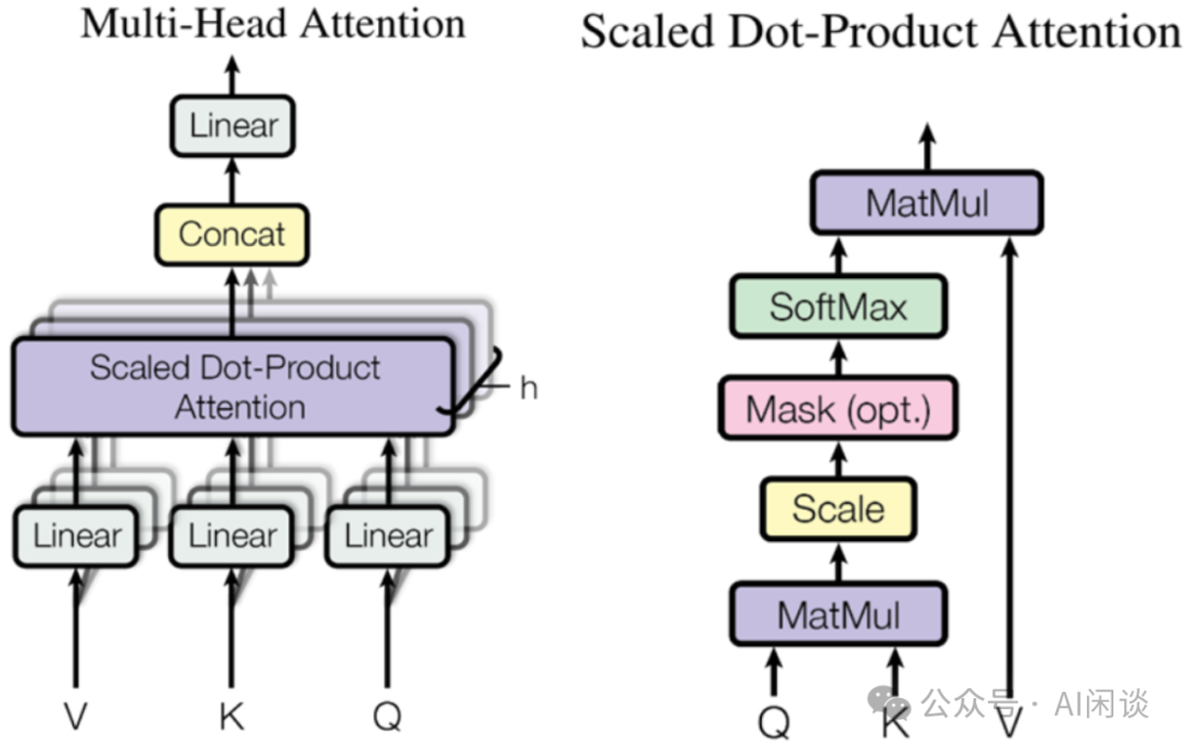 右图中的 Scaled Dot-Product Attention(Weight 无关)。