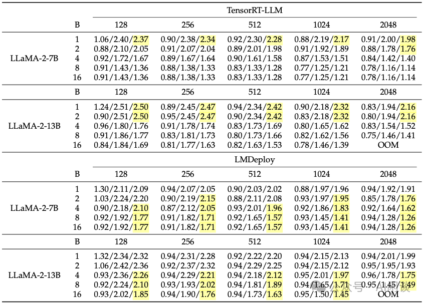 Batch Size 比较小时,Weight 相关的矩阵乘法都是 Memory Bound,而 Weight 无关的 Attention 计算的算术强度和采用的 Attention 方案及序列长度有关。