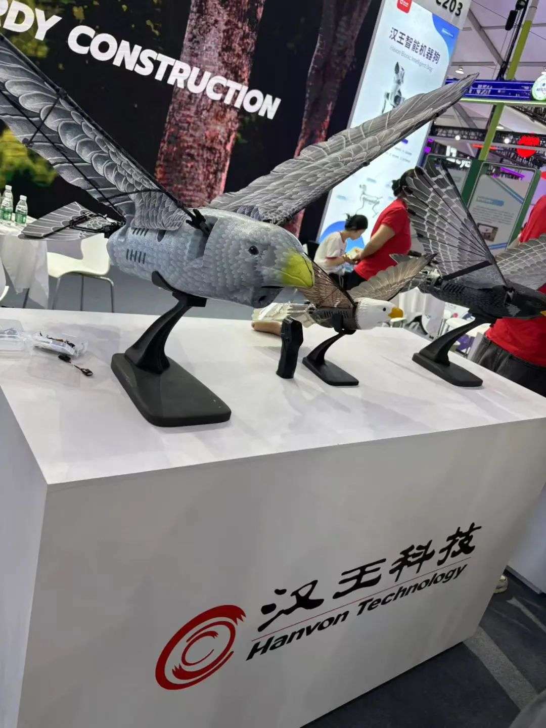 汉王科技在展台上展示了自己的仿生鸟。它代表了航空仿生领域的另一条重要路径。