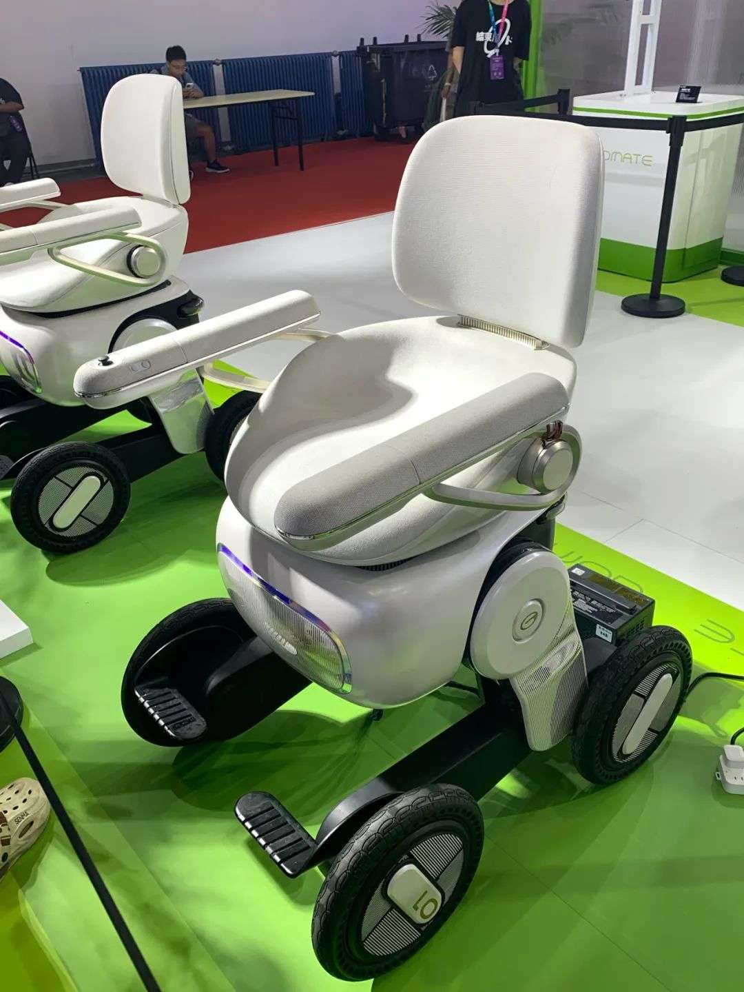 但最引人注目的,是广汽集团推出的一款智能化电动轮椅,广汽集团官方将其称为具身智能载人轮足机器人GoMove。据了解,该机器人能够实现载人上下楼梯,最大负重90公斤。