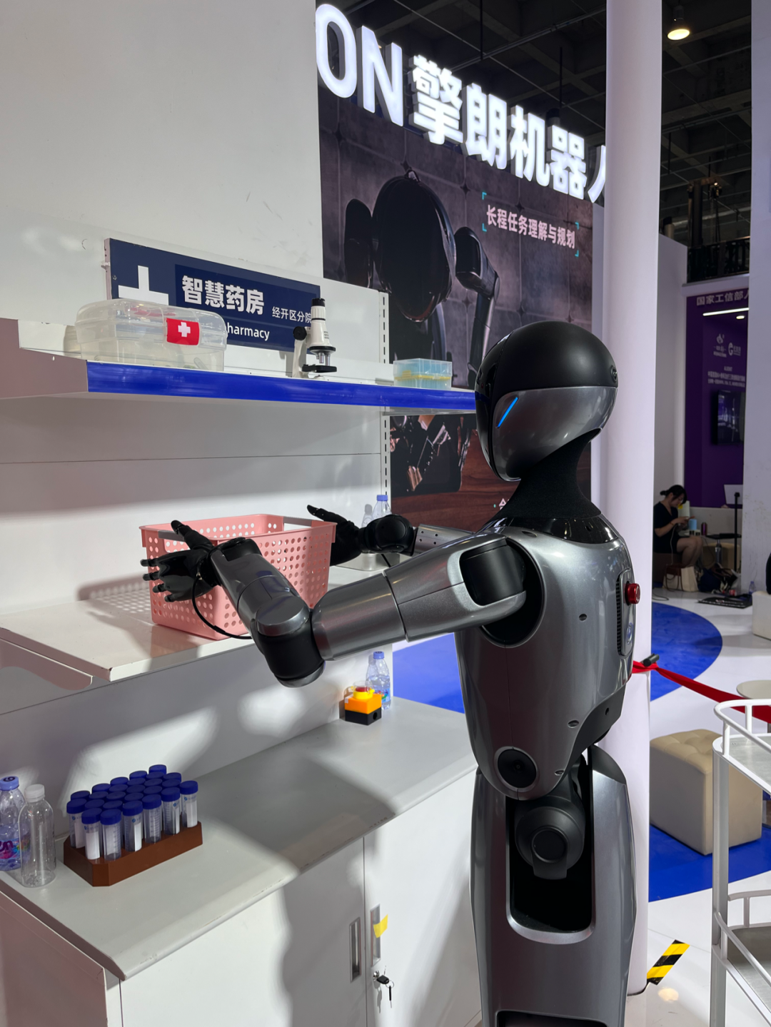 擎朗机器人模拟在药房中的特定工作