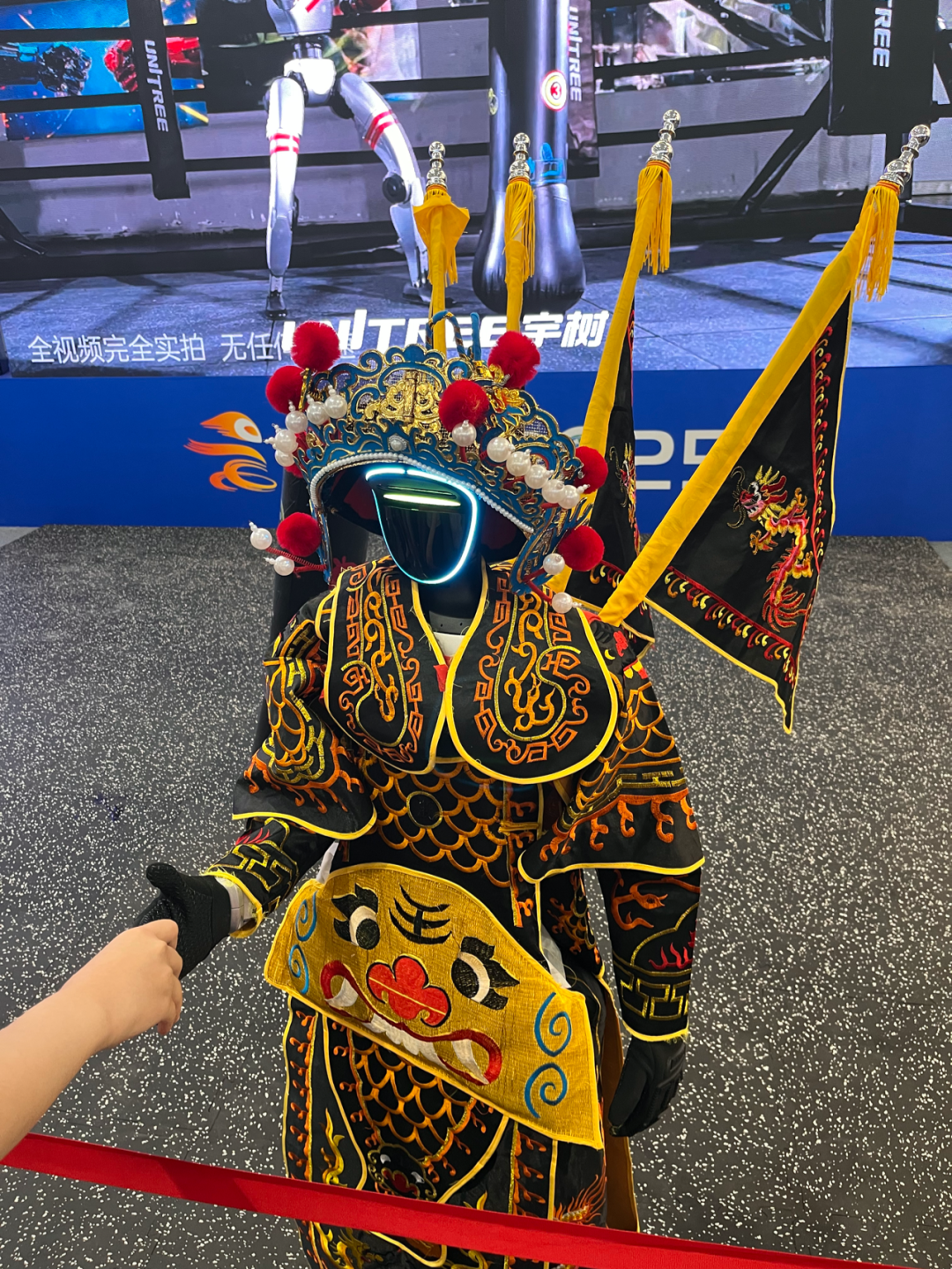 这款以耐造抗摔、自主恢复能力强著称的机器人,在WRC展区以独特的京剧造型亮相,与观众亲切互动,吸引了非常多关注。此次WRC,最新升级的G1与全新R1同台竞技。