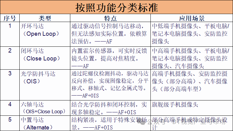 ——线性马达(VCM / 直线步进):侧重行程、推力、响应时间,直接驱动镜头组直线移动(如手机 OIS 防抖、快速对焦)。