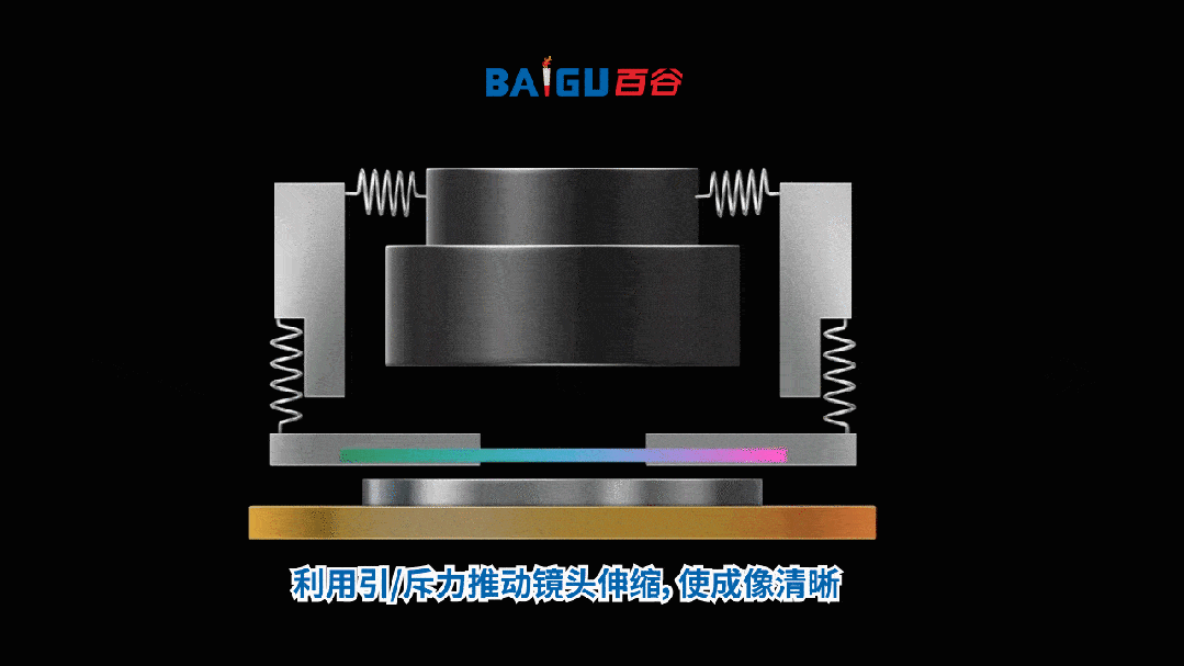 VCM马达的工作原理和扬声器一样,都是通过物理学中的左手定律来实现工作的。线圈通过上下两个弹片固定在磁铁组中,通电时,电流经过线圈会产生磁场,线圈磁场和磁石起相互作用,促使线圈向上移动。锁在线圈里的摄像头在通电之时移动,断电时,线圈在弹片弹力作用下返回原位置这样就实现了自动对焦功能。