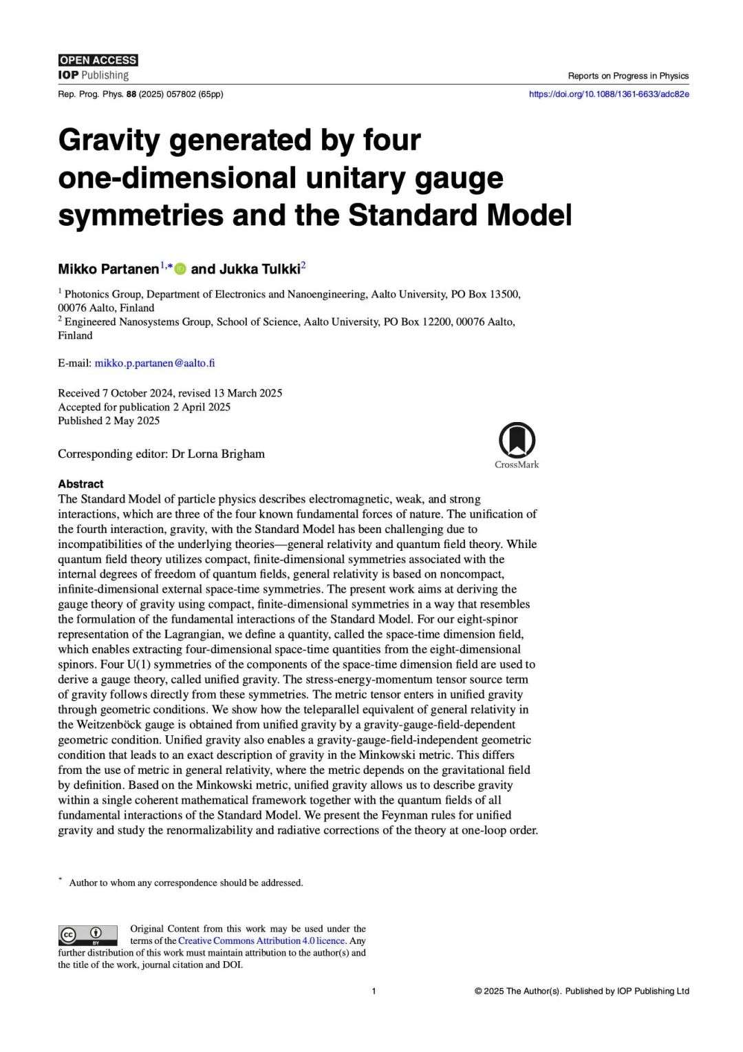 前不久,一篇发表于《物理学进展报告》上的文章中,两位来自芬兰的物理学家提出了一种“统一引力(Unified Gravity)”理论,首次在标准模型框架内实现了引力的量子化(部分)。