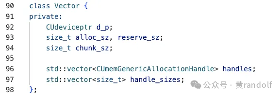 handles:存储物理内存句柄(由 cuMemCreate 分配)。