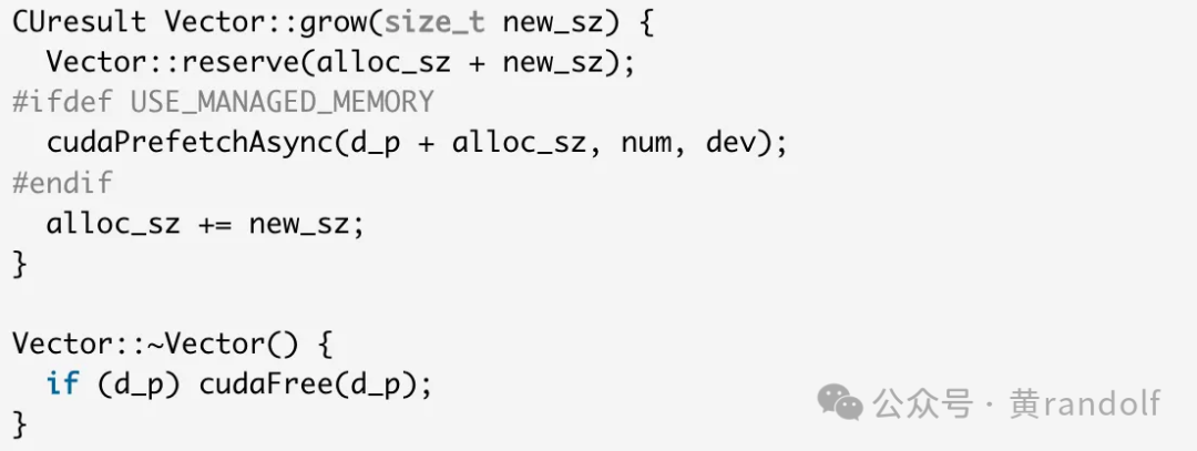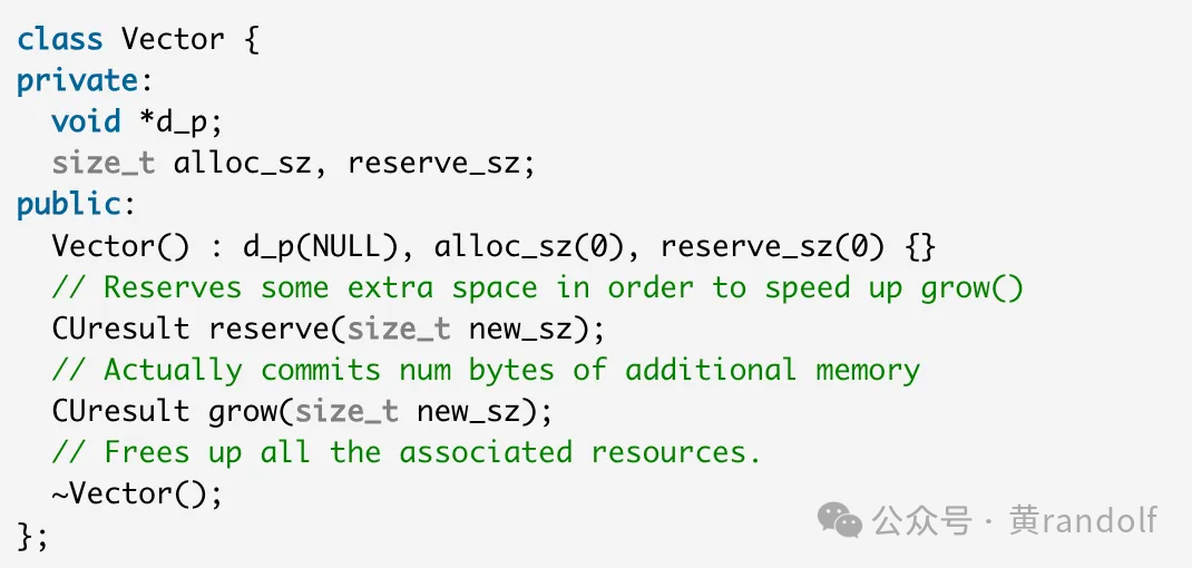 NVIDIA 在官方示例中给出了基于 VMM API 实现 vector 的完整案例[3]。这里我们对比两种实现方式——传统 cudaMalloc 和基于 VMM API 的实现——来看看它们的差异。