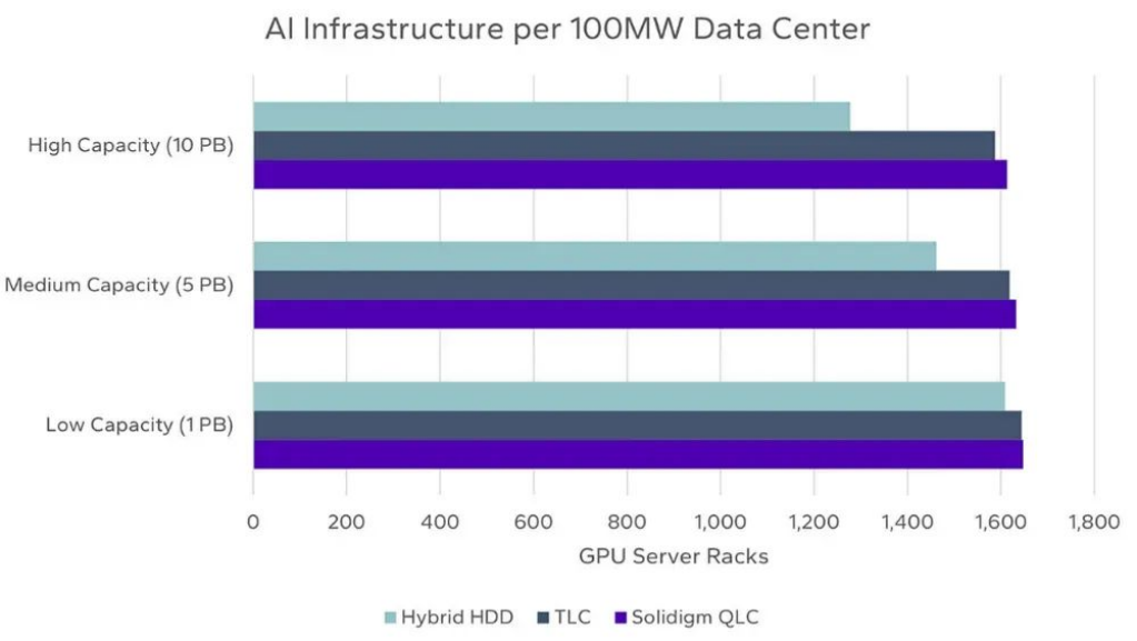 基于100 兆瓦数据中心的AI基础设施规模 来源:Solidigm