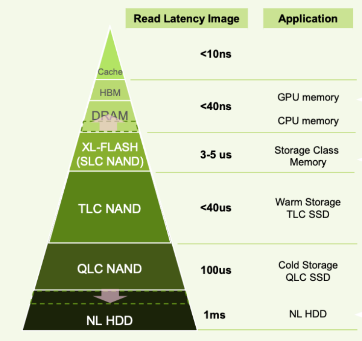 从颗粒的选择上,AI SSD会朝着QLC颗粒方向走。铠侠CEO柳茂知也表示,QLC SSD是AI行业最好的选择。尽管从SLC到MLC,再到TLC,最终到QLC,SSD的性能一直在下降,但随着技术的演变,2025年QLC SSD的速度已经比2017年的TLC SSD快很多了。如今QLC SSD的顺序读写速度可达7000MB/s左右,性能十分强大,能够满足AI大模型数据存储和调用的要求。