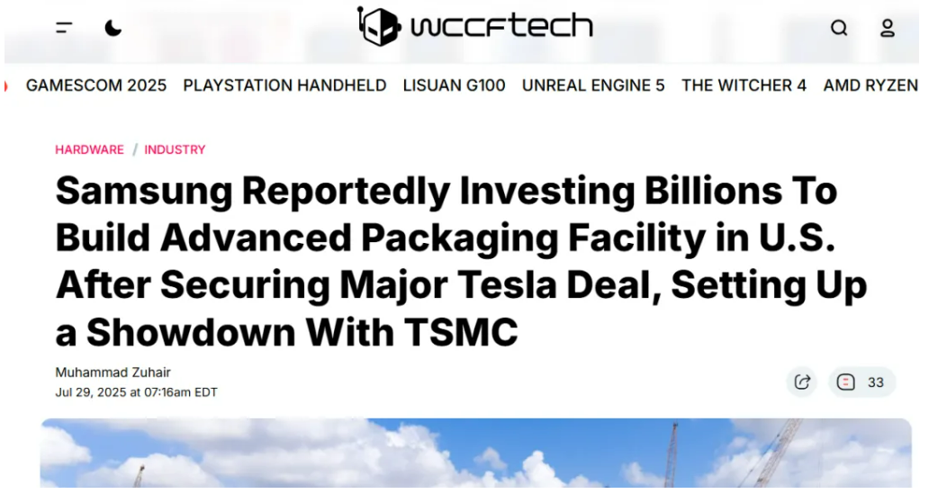 在与特斯拉签署价值165亿美元的芯片代工大单后,三星迅速抛出一记重磅战略举措。近日,三星正式官宣,计划豪掷70亿美元在美国打造一座先进芯片封装工厂。这一消息瞬间点燃行业关注热情,成为全球半导体领域热议焦点。