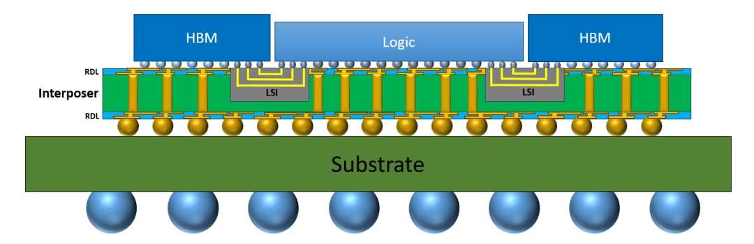 I-Cube S采用硅中介层(Silicon Interposer)作为核心连接载体,将逻辑芯片与高带宽存储器(HBM)裸片水平集成在同一中介层上,实现高算力、高带宽数据传输与低延迟特性。