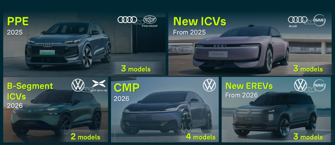 这里多说一句,奥迪官方目前只宣布了两款A5L和两款Q6L e-tron是华为的乾崑智驾。但是考虑到奥迪和大众集团都是平台化造车的逻辑,一般研发完平台后,该平台的车都是套娃逻辑,所以PPC和PPE平台后面的车型,大概率仍然使用了华为乾崑智驾。