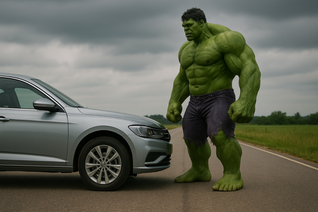 我们来讲一个极端的例子。假设跑高速的时候,车前面突然瞬移过来了一个障碍物,比如说是绿巨人飞过来了,假设这时候我们离碰撞只剩500ms的反应时间。