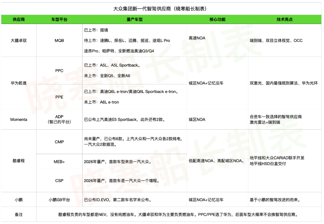 大疆卓驭这是这样,基本上最近两年MQB平台带智驾的车型,甚至奥迪接下来的新车Q3/Q4都是他们做的,就不存在第二个供应商。