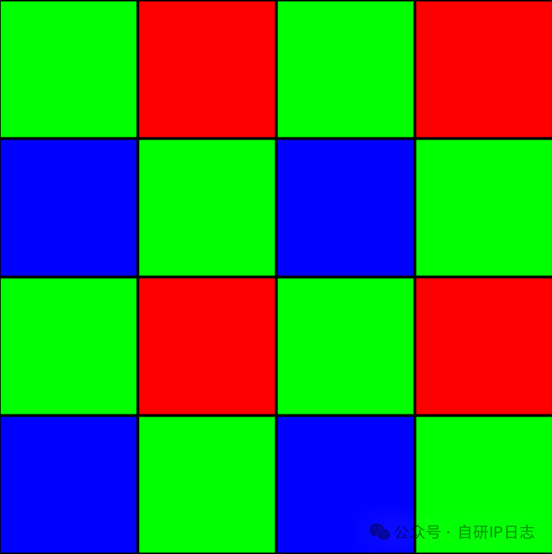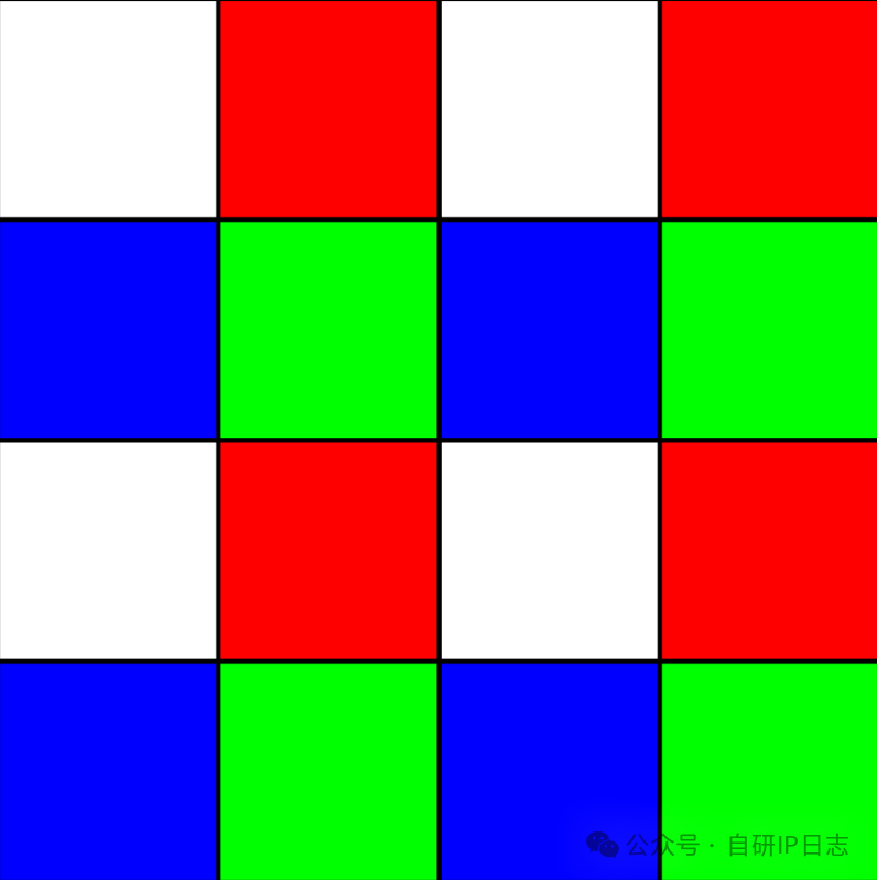 什么是Bayer图? 主流Sensor(尤其是CMOS)输出的图像是这样一种分布:
