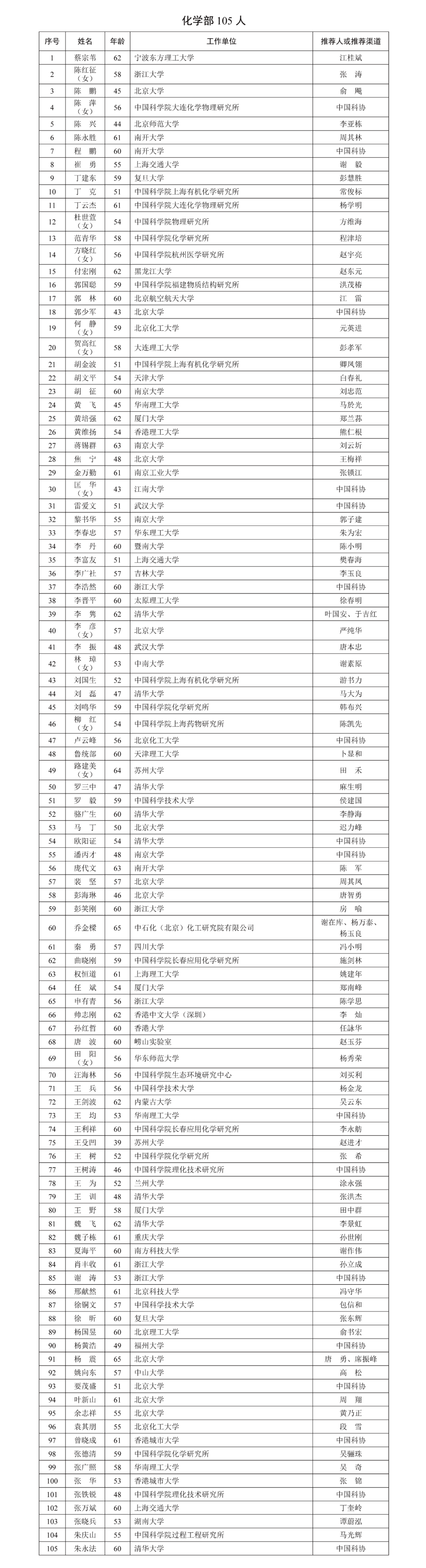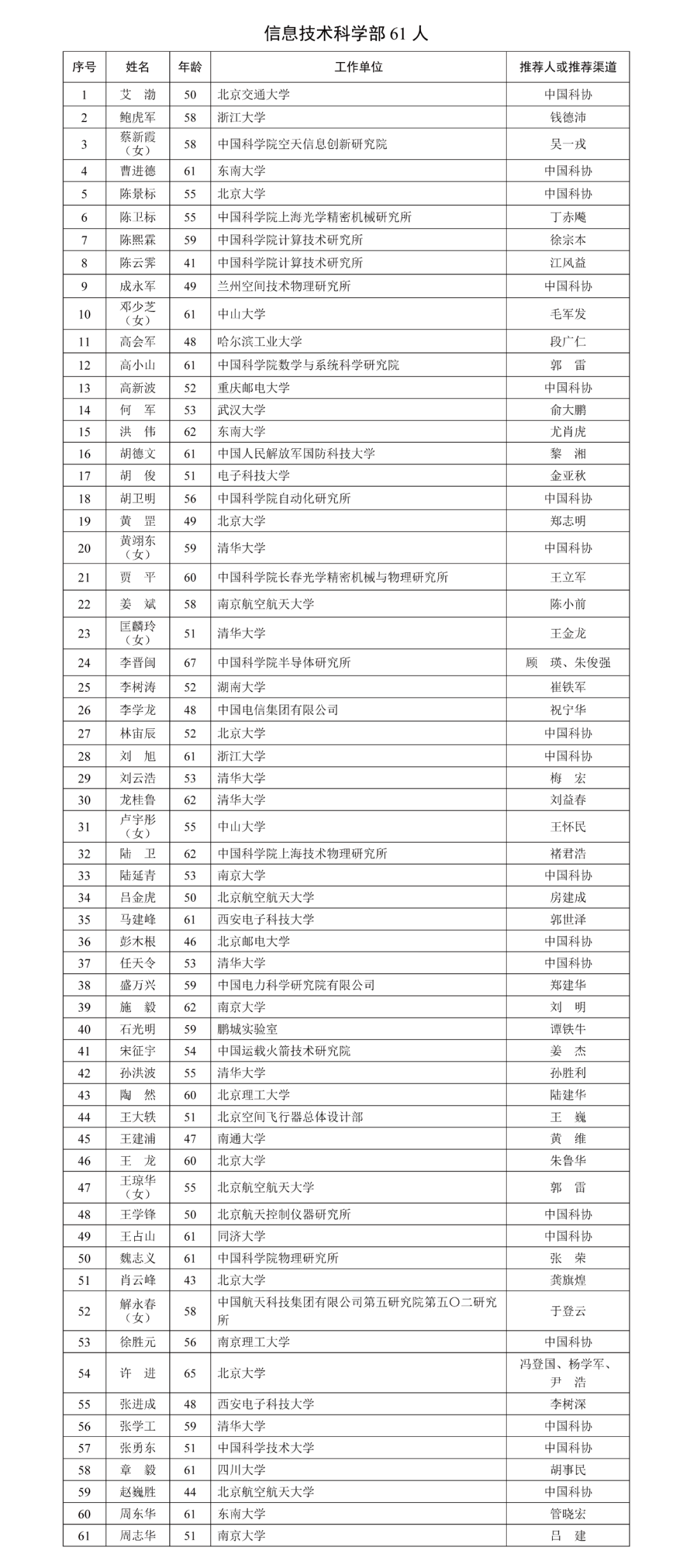 2025年中国科学院院士增选推荐工作已经结束。经中国科学院学部主席团审议,中国科学院党组审定,确认2025年中国科学院院士增选有效候选人639人。根据《中国科学院院士增选工作实施办法(试行)》的规定,现将有效候选人名单予以公布。