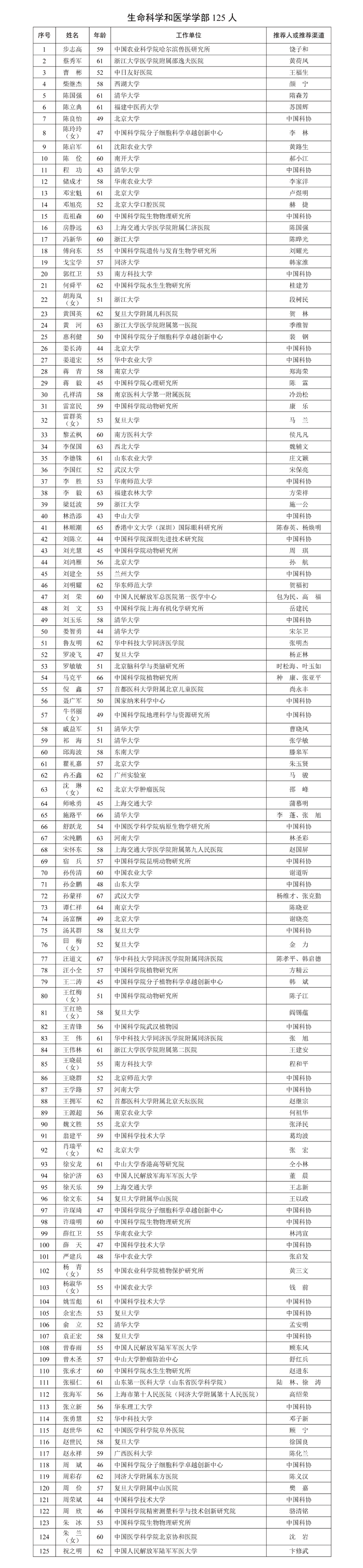 关于公布2025年中国科学院院士增选有效候选人名单的公告